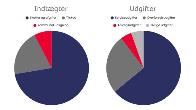 Grundlæggende har kommunen to typer af indtægter: skatter og afgifter samt tilskud og udligning.